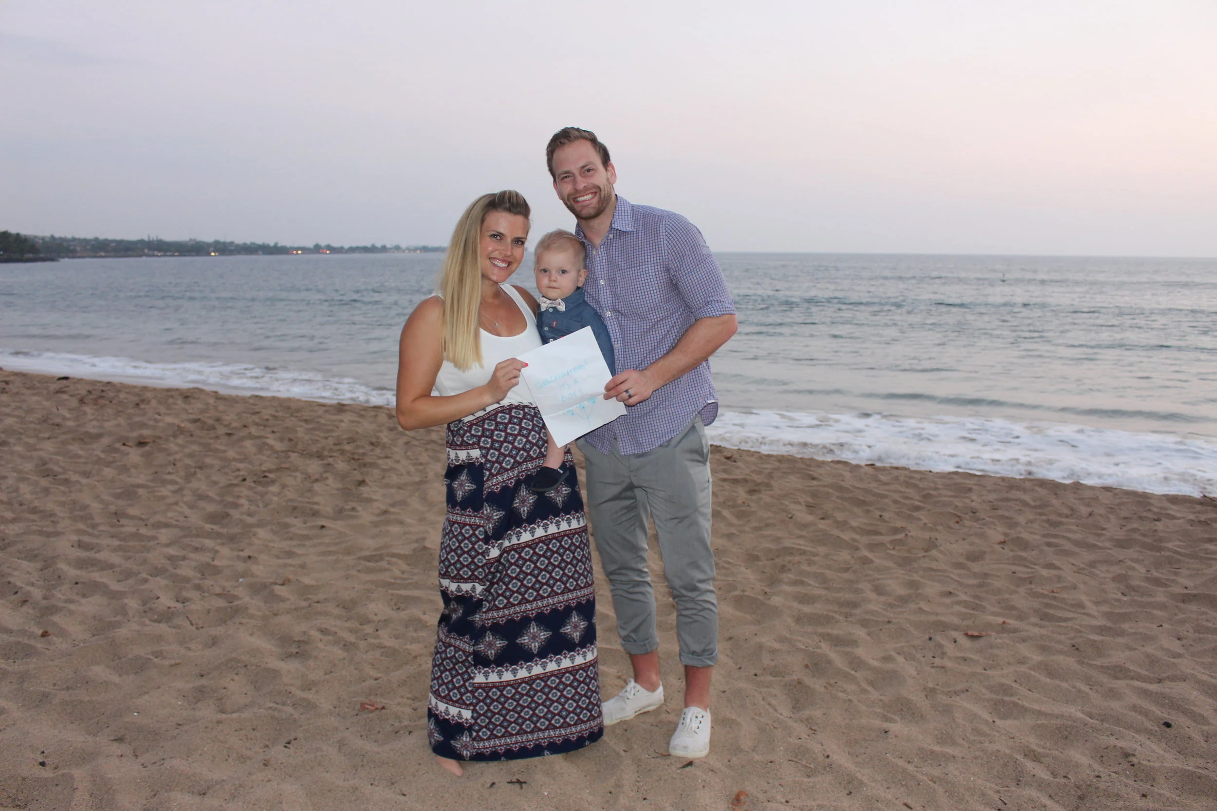 Luke, Thor and I had a tasty (overpriced) dinner with live music where Thor shook his booty to the music and got dozens of compliments on his adorable bow tie. Then we walked along the beach with our magical envelope!! This envelope would tell us if Thor was going to have a little brother or little sister in August. I had carried it with me for over a week and was dying to open it. So much that I even let my girlfriends on our girls trip take a peak. Just because I wanted to wait and share a special moment with the hubs didn't mean that I was gonna make everyone else wait. Plus I was kinda hoping one of them would slip and tell me. Hehe! Of course they didn't.
