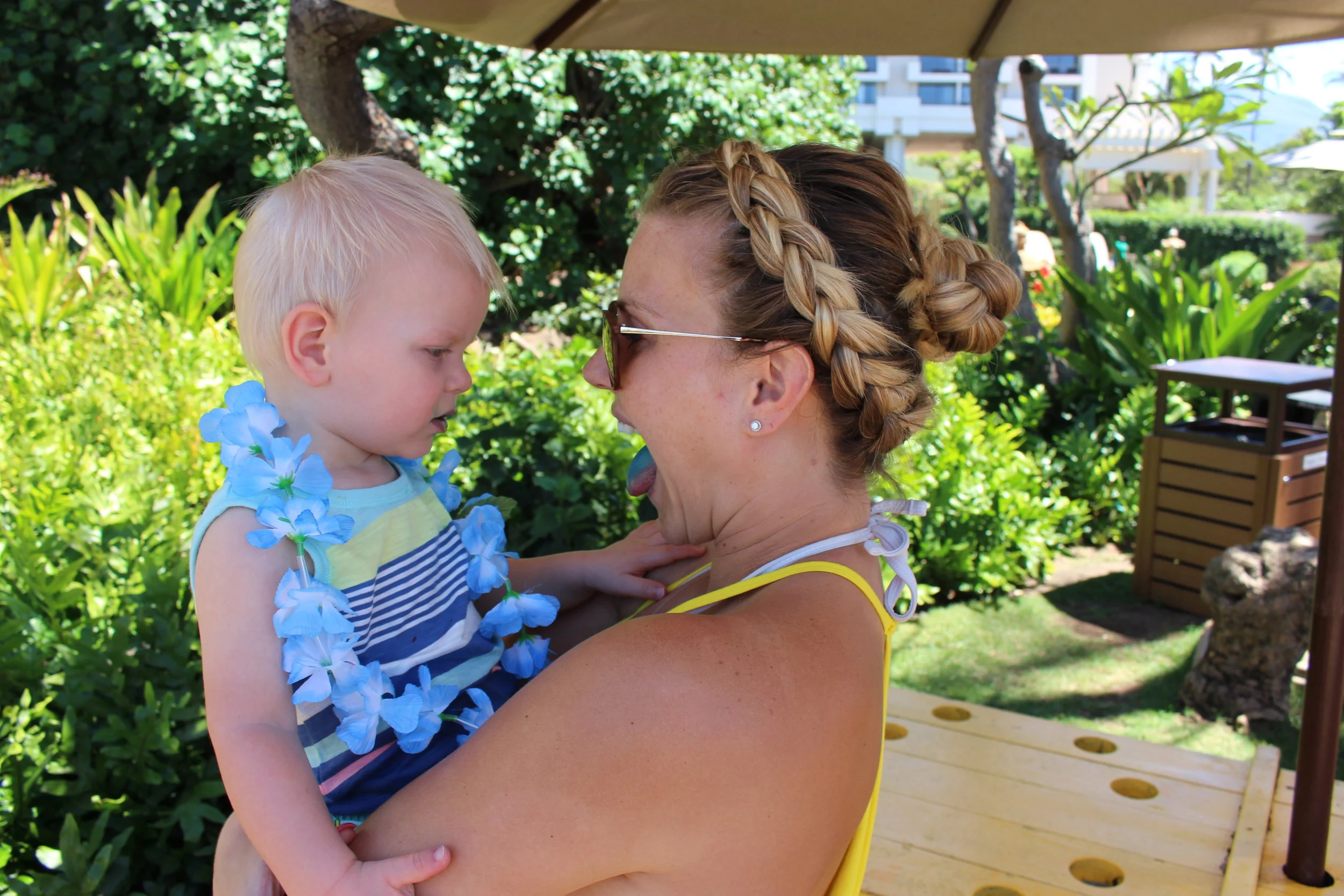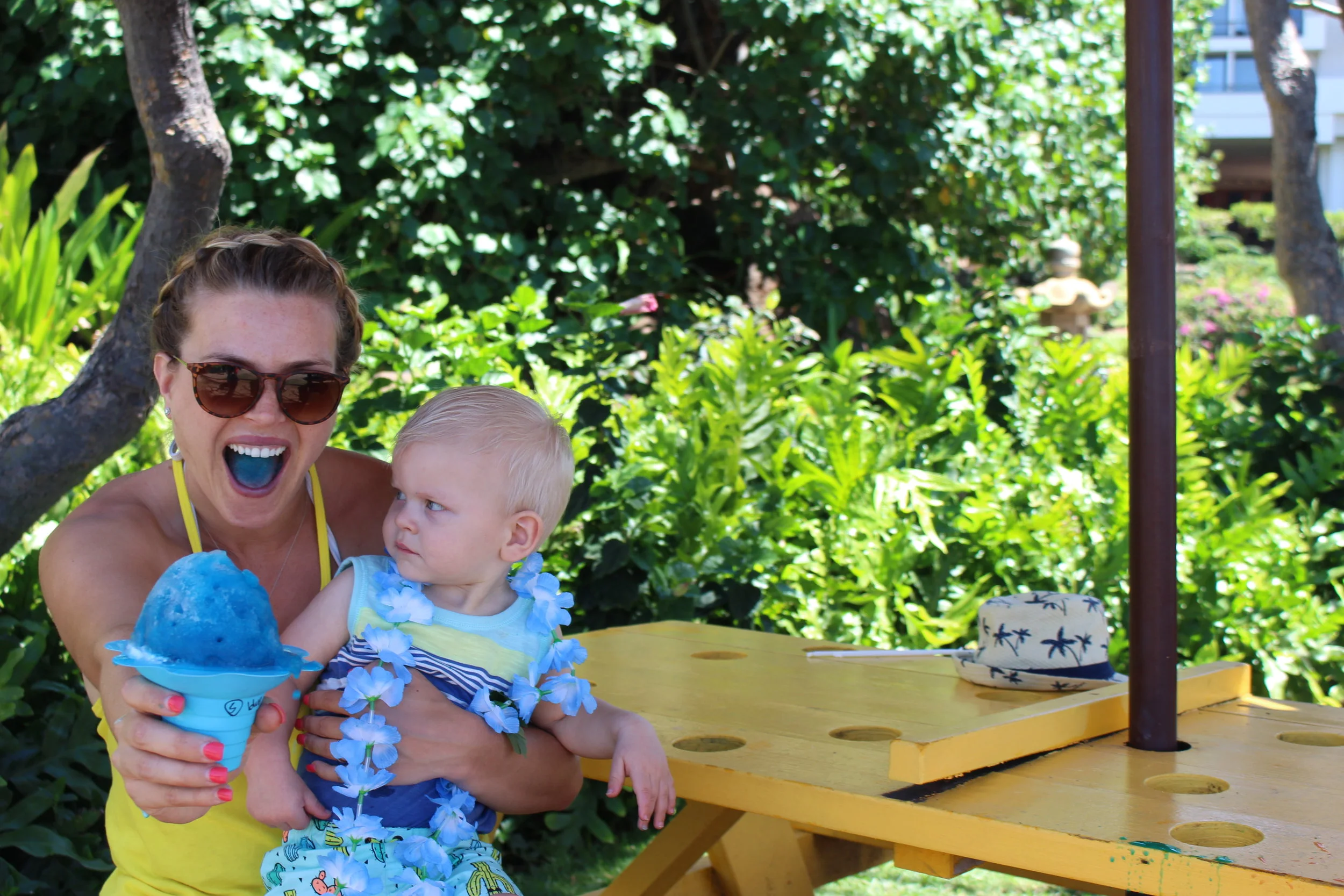 I had all sorts of fun ideas for a beautiful Maui photo shoot. One was leis the color of the gender, the other was snow cones on the beach. Both sounded Hawaiian and perfect! One of the problems was that the only time available was during Thor's nap. I told myself, "he's flexible and even if he's not, surely we will get a few good pictures". The next problem was that it was impossible to find a real blue lei and also the snow cone shop wasn't open during the time of our photo shoot. So basically I had nothing!!! But, we continued on with plans in hopes of still getting fun pictures. Wow, was I wrong!!!! Every single photo was a disaster. Thor either looked like he was asleep or was crying in them all. The photographer looked at me with optimistic eyes hoping that surely I would like them. He even told me during the photo shoot that the beginning of a cry looks like laughter. Well, unfortunately, I am very particular when it comes to photos seeing how I lived in Los Angeles and did many photo shoots during my 5 or more years there. So needless to say, I didn't purchase a single one, even though I felt terrible for wasting the photographers time, I wasn't about to waste money on photos I hated. Here are a few of the photos that we took on the beach the night we opened the envelope and the next day when the snow cone stand opened, not professional, but still very special.